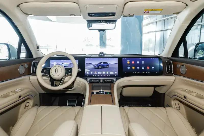 内饰方面,新车整体设计基本延续在售车型,但在配置方面进行了多项升级。新车搭载经过升级的智能激光投影巨幕系统2.0,拥有32英寸车载巨幕,分辨率高达200%,亮度提升63%。此外,新车后排全新升级智能隐私车窗,最高遮光率>99%,紫外线阻隔率>99%,红外线阻隔率>97%。