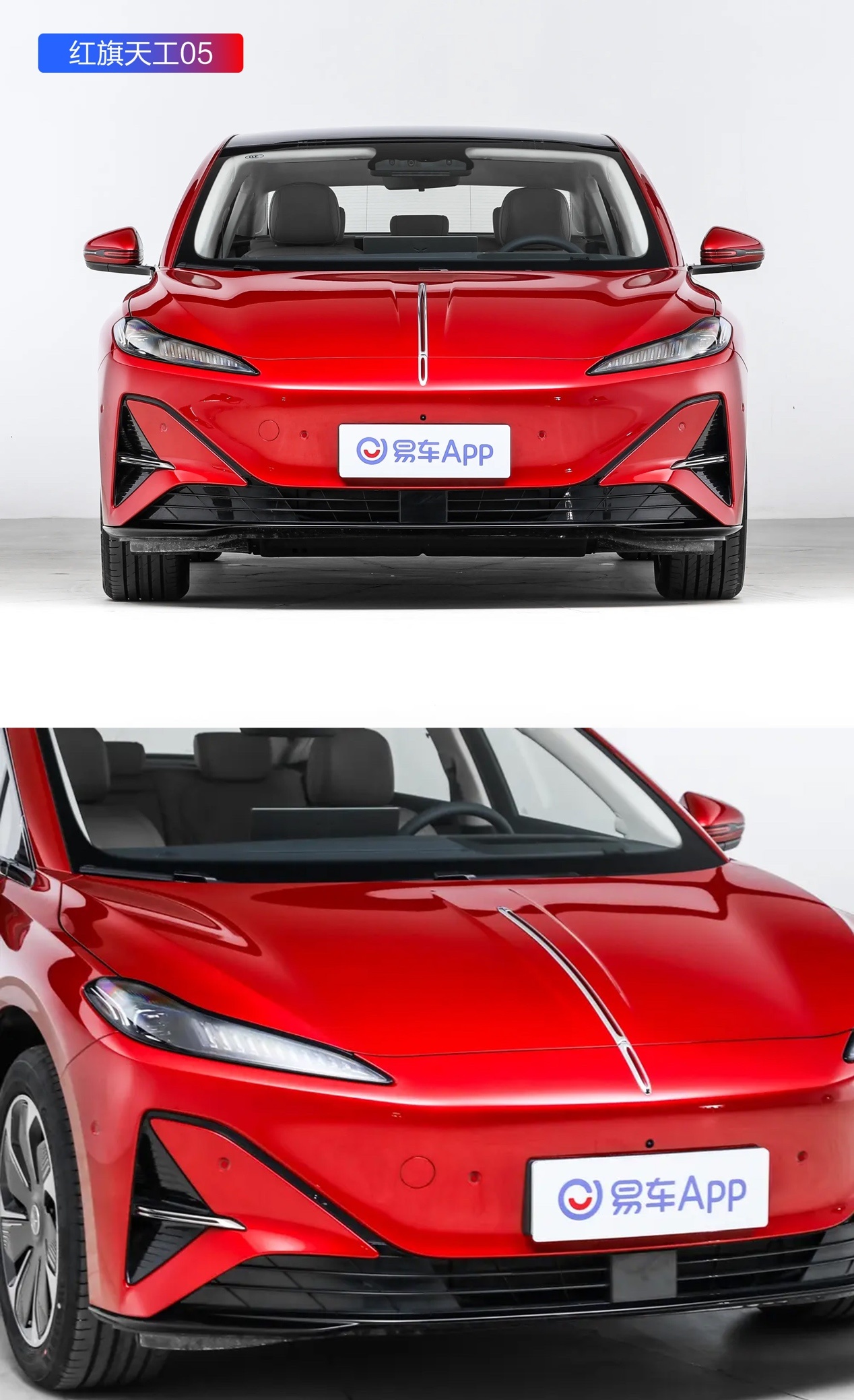 红旗天工05前脸采用“高山流水”式格栅设计,搭配贯穿式LED灯带与经典“旗贯长红” 立标,将红旗家族大气风范与未来感完美融合。车身线条流畅优雅,溜背式造型搭配隐藏式门把手和低风阻轮毂,营造出强烈的科技氛围。车尾的鱼尾贯穿尾灯,增添了灵动的动态美感,整体设计融入了中国传统美学元素,独具韵味。