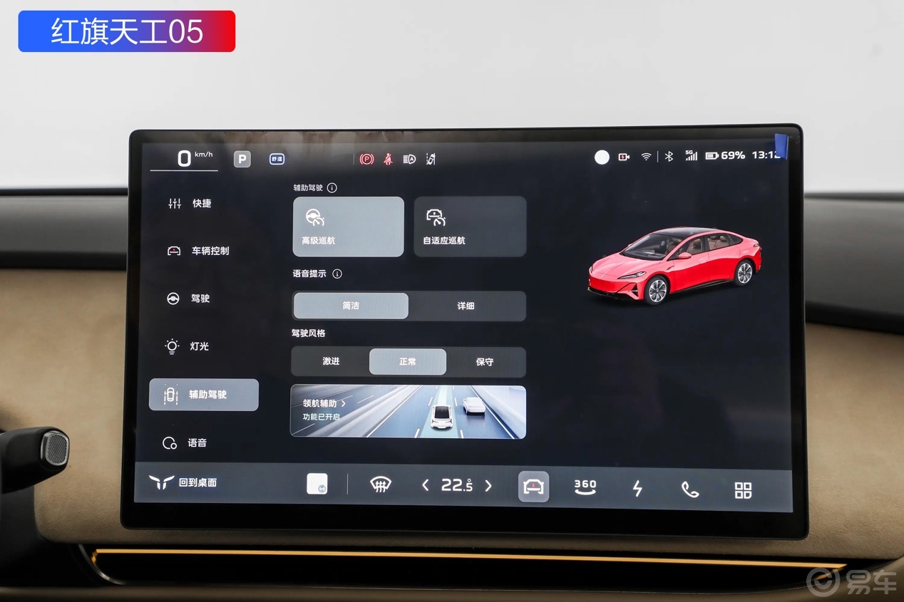 红旗天工05在智能驾驶辅助方面的配置也十分丰富,搭载了红旗最新研发的卓驭成行平台 3.0+,采用行业首发量产的惯导三目立体视觉系统,能够实现不依赖高精地图及激光雷达的城市NOA、高速NOA 和全场景泊车辅助。同时,该车还具备如辅助泊车入位、循迹辅助倒车、车道居中保持等多种智能驾驶辅助功能,支持城区、高速路段的辅助驾驶功能,可360度无死角实时监测周围环境,给车辆提供最大限度上的行车辅助保护,精准且全面的提升行车安全性。