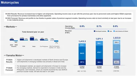 新兴市场中印度和巴西市场需求最大,进而推动了整体销量,而且巴西、印度市场的单价提升,让摩托车业务营收实现了增长。(但产品价格上涨导致劳工成本上升,以及产品保修等增加,让销售费用和行政费用的支出,最终利润与2023年大致持平)。