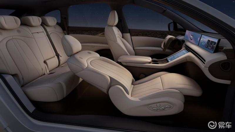 造型方面,新车延续了家族化设计语言,提供雅典娜白、拉斐尔茶、伦勃朗灰、阿瑞斯黑四款车身颜色供选择。空间方面是新车一大看点,超3米轴距使其拥有90.4%的得房率,后排更是拥有超1米的头部与腿部空间,膝部距离达到190mm。此外,新车还拥有四大座椅模式,包含副驾零重力模式、前排双贵妃椅模式、“大床房”以及“超级大床房”模式,大幅提升驾乘舒适性。