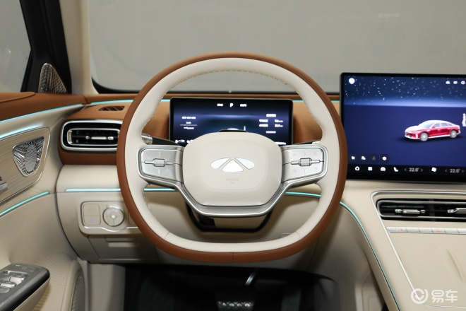 内饰方面,新车将采用5纵3横一体化座舱,搭载零重力座椅,实现AI全场景陪伴,全车具有10气囊+远端气囊。此外,新车拥有灵犀智舱2.0,搭载高通8255芯片,AI数字底盘2.0。