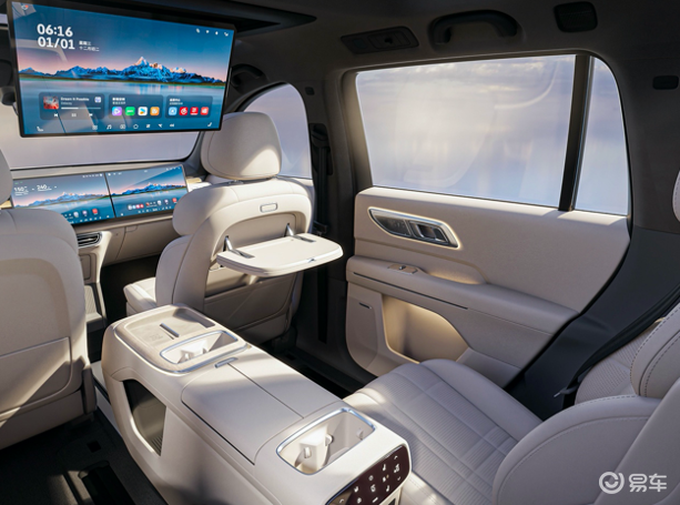 智能座舱:都是华为全家桶在内饰方面,深蓝S09与问界M8则走了不一样的设计路线,S09上两块15.6英寸的悬浮式中控屏+副驾屏组合再搭配上标配43英寸的HUD抬头显示,科技气息更浓郁。而问界M8则把屏幕与中控台融为一体,整体感觉商务气息较浓郁。不过从实际感受来看,深蓝S09的主副驾屏幕角度与高度都更适合乘坐使用,特别是对于副驾而言,看屏幕不需要低着头,能够有效地降低颈部压力,乘坐也更舒适。