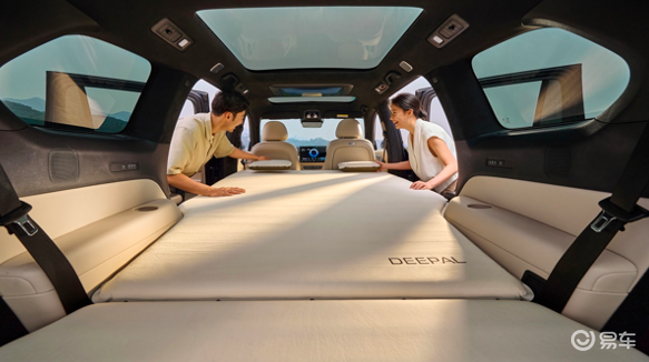 至于空间可变性方面,两台车都能够灵活地对座椅进行调整,可以实现多种不同场景的针对调整,像深蓝S09除了提供近乎同级最大的乘坐空间之外,还提供了多达5种不同规格的“床”的变化,最大能够拓展出一张2.5米的露营床,轻松实现随时随地都能休息的需求。
