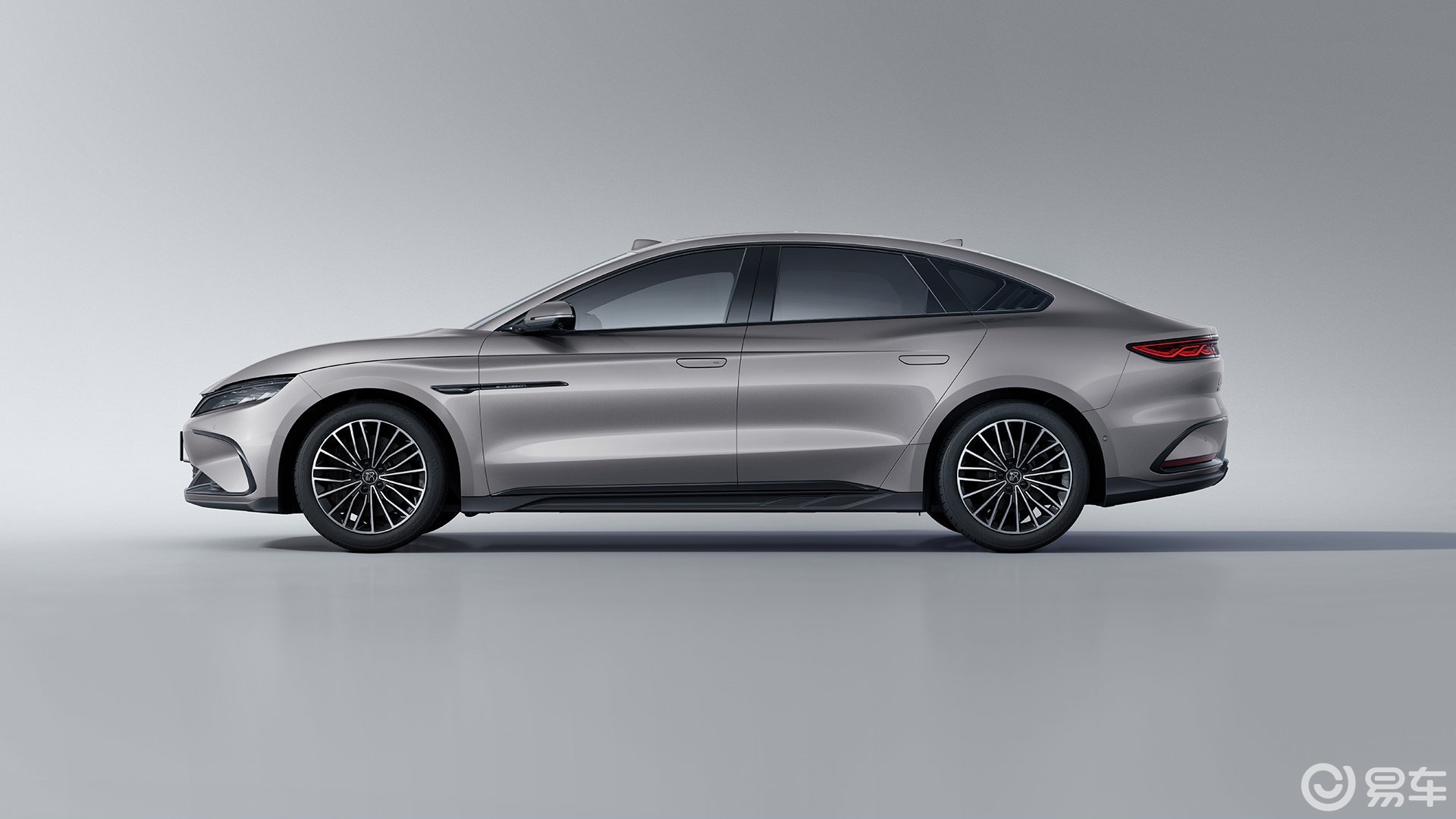 比亚迪汉DM-i的外观优雅大气,前脸半封闭式造型,配上悬浮式龙晶LED前大灯+贯穿龙须式日间行车灯,看起来非常有视觉冲击力;溜背式造型车身配合隐藏式门把手,营造出前卫而又时尚的视觉气息。汉 DM-i虽然颜值很不错,但与风云A9L相比还是有点保守,缺乏了些运动感和精致度。